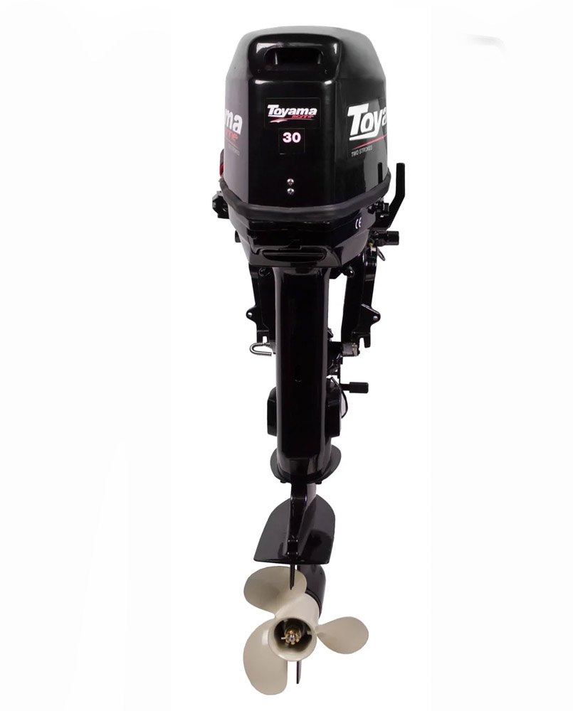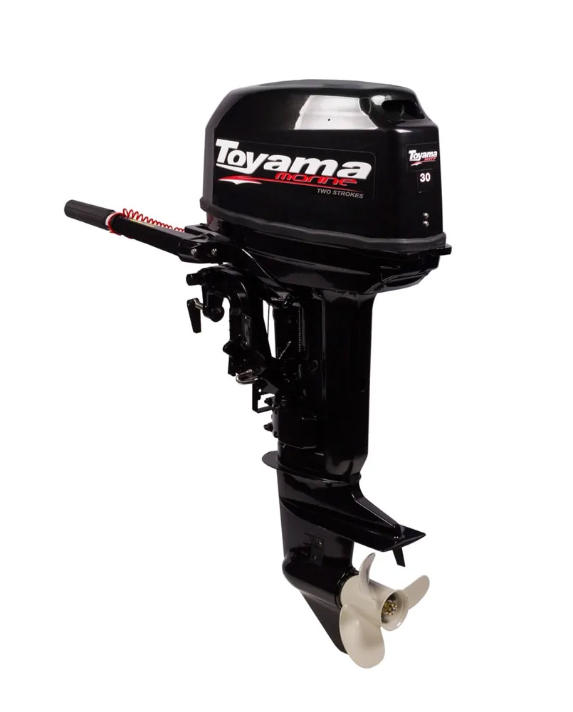 Toyama T30ABMS – лодочный мотор известного завода Парсун - имеет ручной запуск и румпельное управление. Данная модель весит 52 кг. При этом, рабочий объем двухтактного силового агрегата составляет 496 куб. см. Электронная система зажигания обеспечивает минимальный уровень потребления топлива.