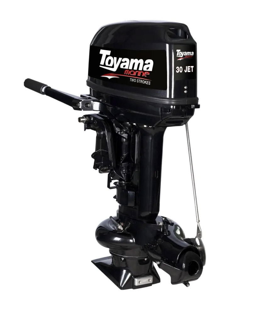 Toyama T30ABM JET – лодочный мотор известного завода Парсун - имеет ручной запуск и румпельное управление. Данная модель весит 63 кг. При этом, рабочий объем двухтактного силового агрегата составляет 496 куб. см. Электронная система зажигания обеспечивает минимальный уровень потребления топлива.
