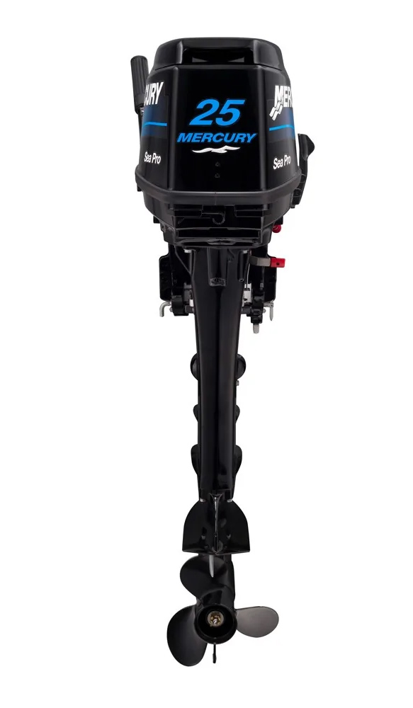 Двухтактный подвесной лодочный мотор MERCURY ME 25 M SEAPRO характеризуется простотой конструкции и надежностью в эксплуатации. Он не требует сложного обслуживания и обладает высокой эффективностью. Двухцилиндровый агрегат подойдет для плавсредств с транцем 508 мм (L).