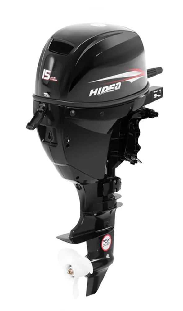 HIDEA HDF15HS — это 4-тактный подвесной лодочный мотор, имеющий силу в 15 “лошадей”, обеспеченную двумя цилиндрами 59х59 мм. Такой движок легко выведет в глиссирование нагруженную 3,5-метровую лодку.