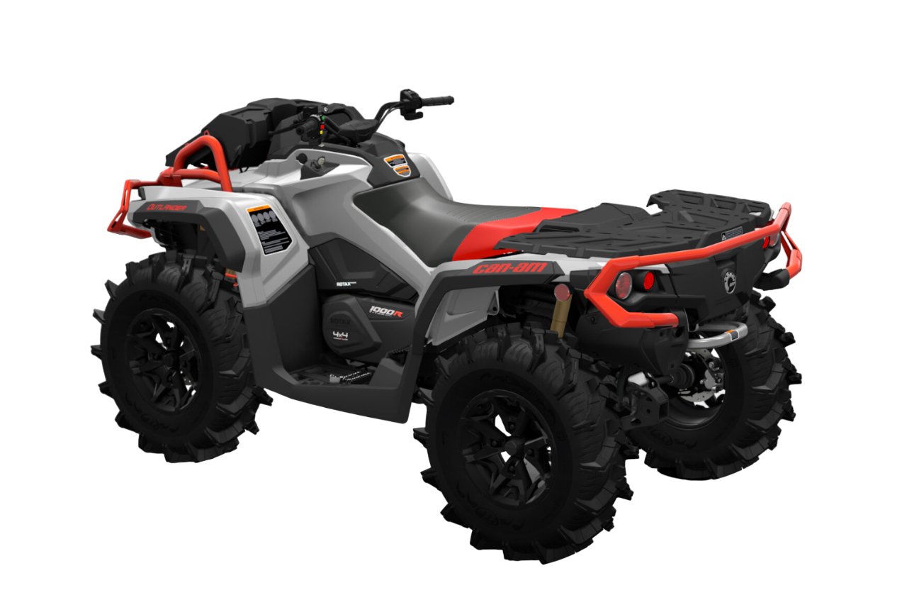 Грязевая версия литрового квадроцикла Outlander. Отличается шноркелем, выносом радиатора и высоким клиренсом (330 мм). Уже с завода здесь установлена 30-дюймовая резина ITP Cryptid с мощными грунтозацепами. Все это позволяет ехать по раскисшим грунтовым дорогам с лужами и глубокой колеей.