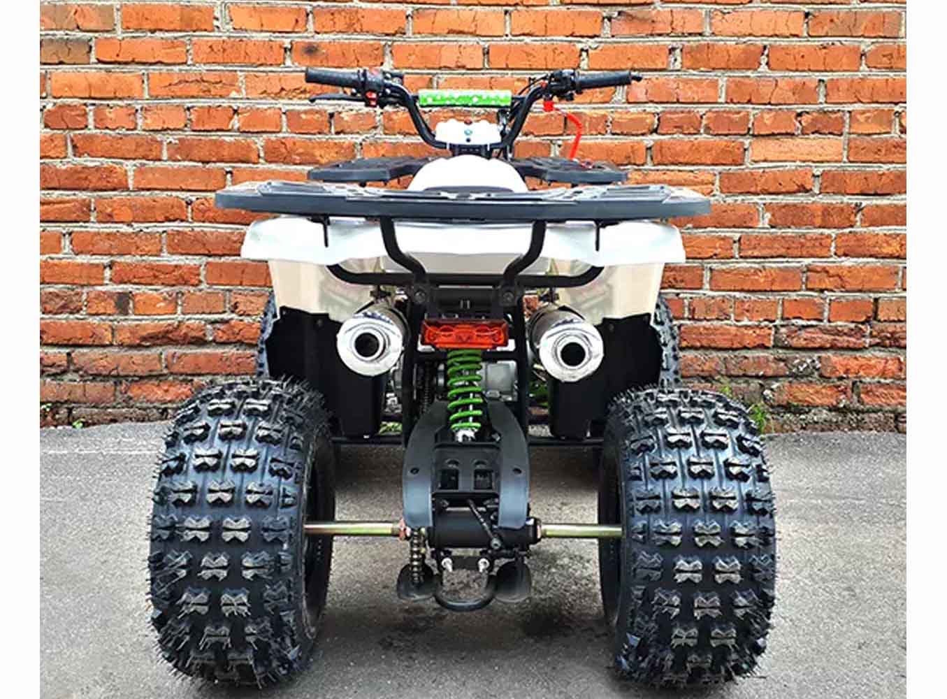 Натяжитель + усиленная 428 цепь передает крутящий момент на задние колеса и находится всегда на звезде при езде по пересеченной местности. 2-х рычажная с 2-я амортизаторами подвеска помогает смягчить неровности дороги и сделать поездку комфортной.
