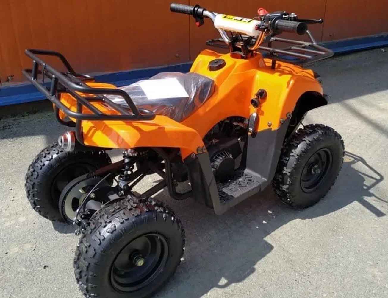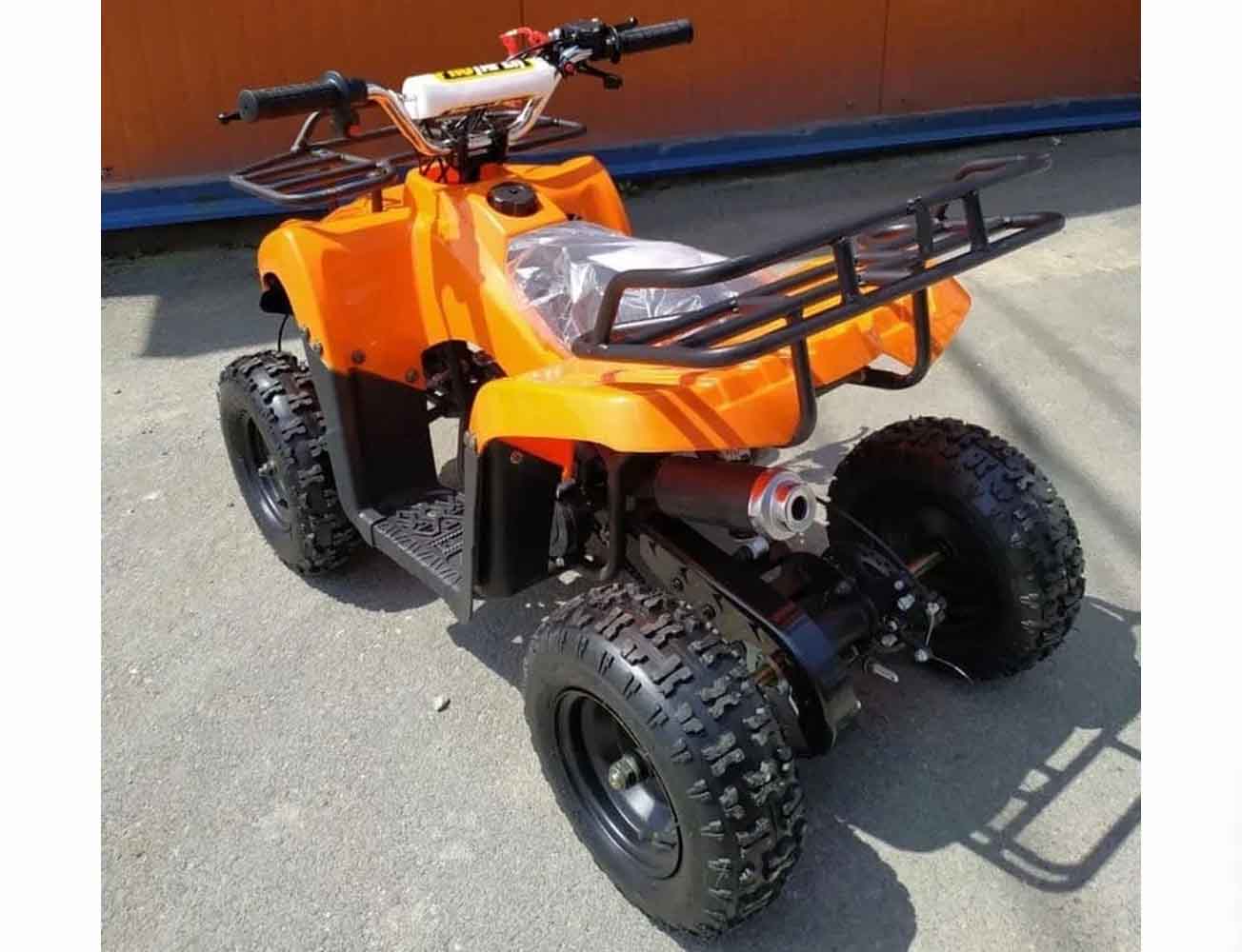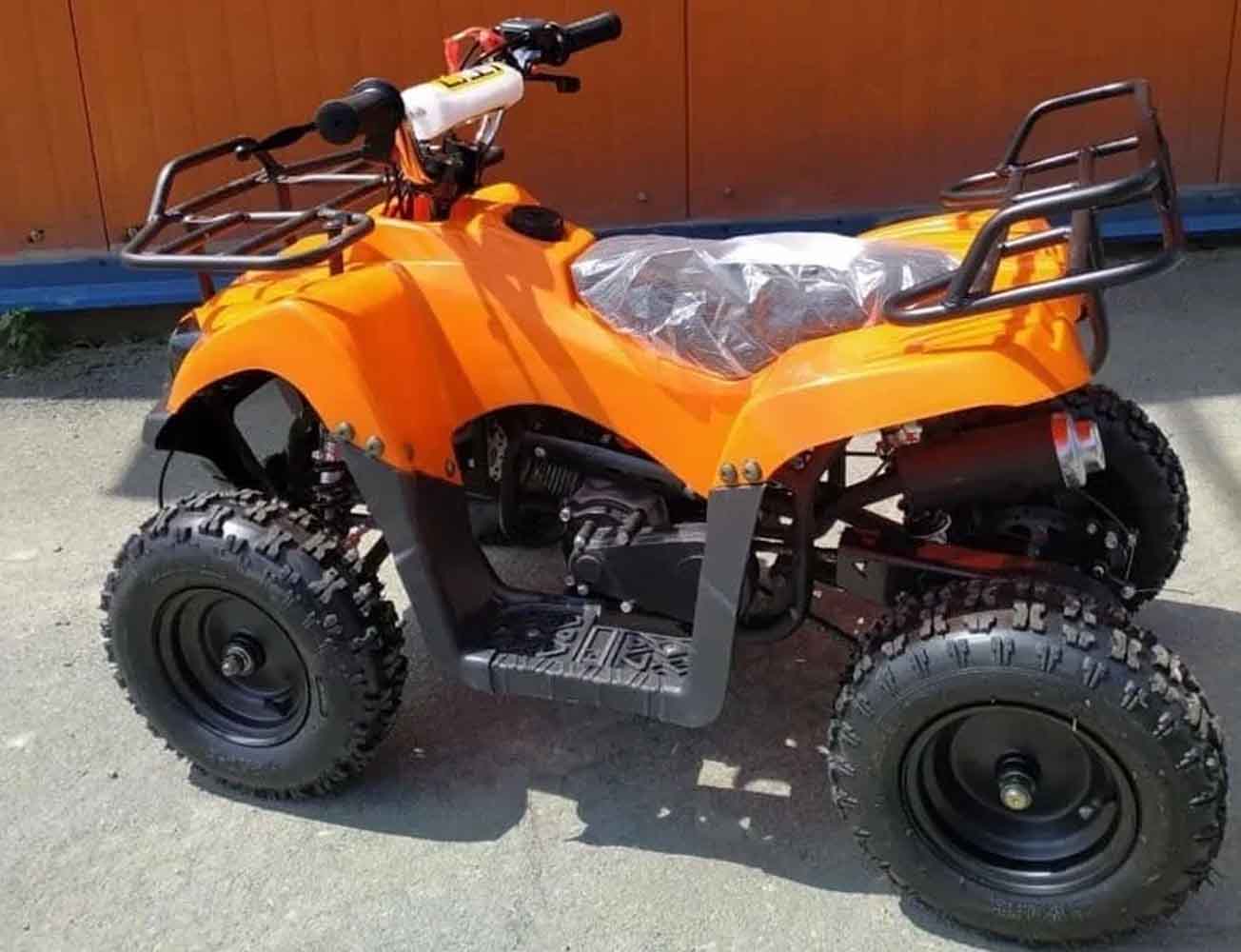 Квадроцикл детский бензиновый Stalker-50 с электростартером и пультом дистанционного включения/отключения. 2.5к В при 8 тыс. об/мин. Фары светодиодные. Система смазки: Бензин с маслом (25:1 (бензин/масло) 40гр 2-х тактного масла на 1 литр 92 бензина). Работает тихо. Рама стальная из металлических труб и профилей. Скорость можно ограничить специальной регулировкой до 7-10 км/ч. Возрастная категория: 3 — 9 лет.