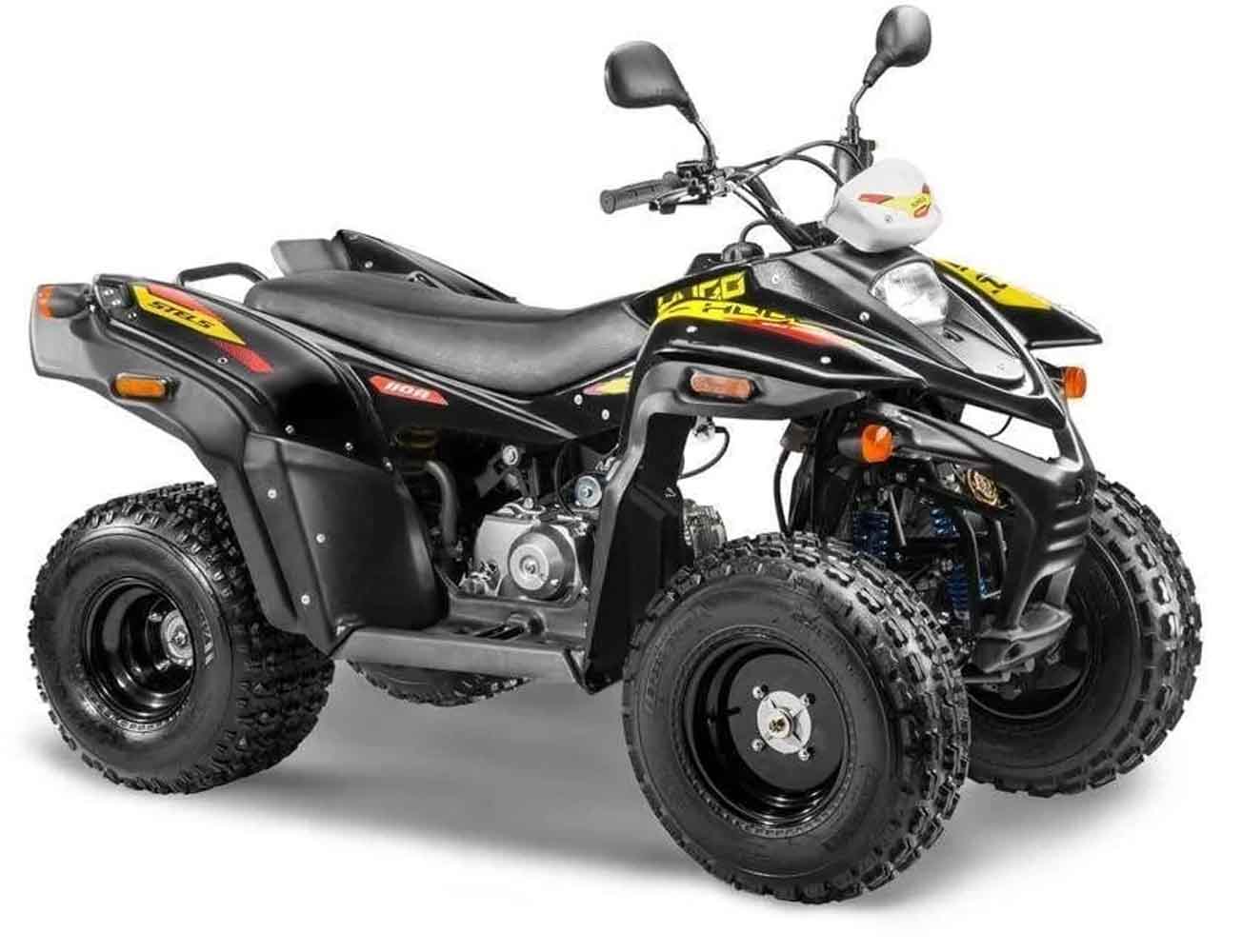 Квадроцикл ATV 110A HUGO — это маневренный мотовездеход с мощностью 7 л.с., который послужит отличным подарком для юных искателей приключений. Аппарат оснащен 1-цилиндровым 4-тактным двигателем воздушного охлаждения объёмом 107 см3, который позволяет показывать уверенную проходимость через грязевые ямы и разгоняться до скорости 60 км/час. На данной модели установлена полуавтоматическая коробка передач, которая поможет справиться с разными уровнями бездорожья. За безопасность водителя в HUGO отвечает не только ручной, но и удобный ножной тормоз, а также полезные боковые зеркала заднего вида, поворотники, ближний и дальний головной свет, задняя фара, звуковой сигнал.
