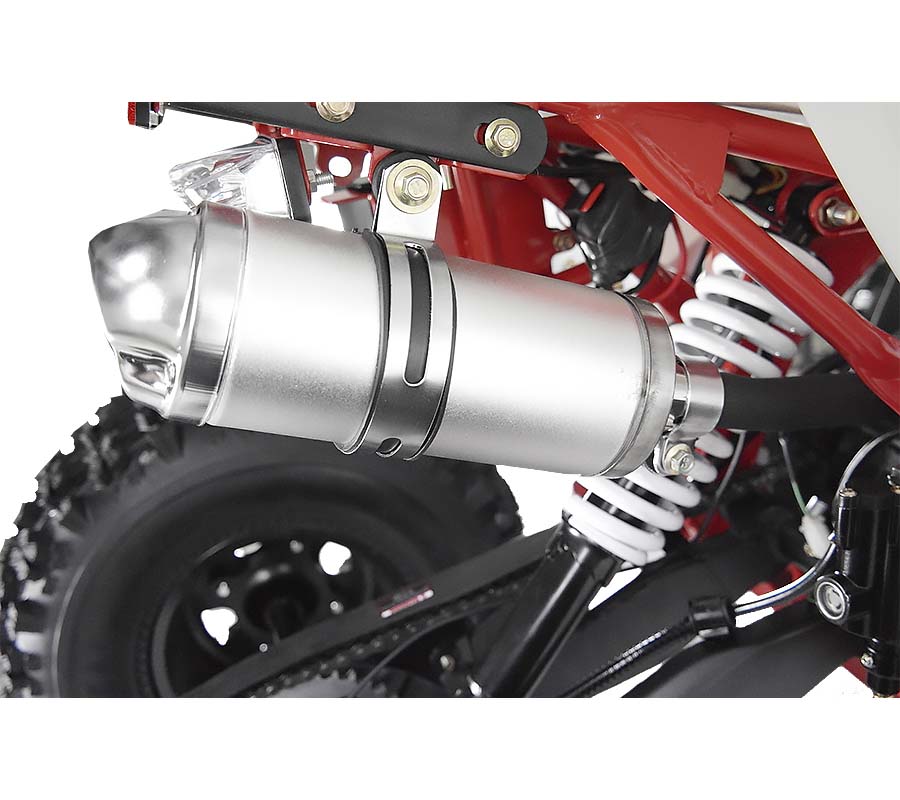 Проверенный 125 кубовый двигатель, автоматическая трансмиссия с реверсом помогут быстро привыкнуть к управлению квадроциклом, сигнализации с функцией родительский контроль позволит в любой момент остановить квадроцикл в радиусе 100 метров.