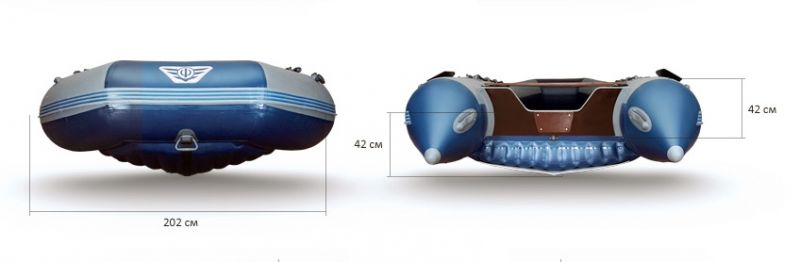 Баллоны лодки имеют переменное сечение диаметр которых 530 мм. в корме и 480 в носовой части. Высота бортов в кокпите 380 мм., что позволяет защитить себя от высокой волны, брызг и чувствовать себя уверенно в штормовую погоду.