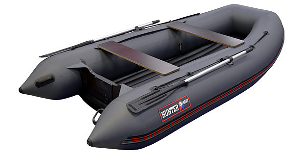 Отличительной особенностью надувной лодки Хантер 310 А является стационарно установленное надувное дно низкого давления. Надувное дно представляет собой независимый герметичный отсек, вклеенный между баллонами надувной лодки. Одним из очевидных плюсов такой конструкции является малый вес, компактность и жесткость в собранном виде. При сборке надувной лодки с дном низкого давления, как таковой монтаж пола отсутствует – достаточно просто накачать отсеки лодки и установить сиденья и весла.