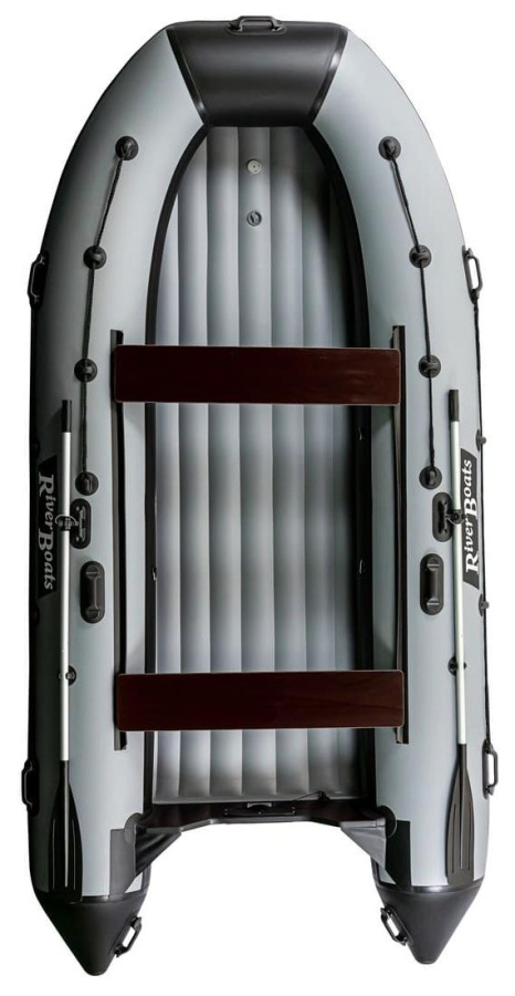- Удобство. Характерный для всех лодок RiverBoats леерный трос проходит по верхней поверхности носа лодки и по боковой поверхности бортов. Передвижные сиденья фиксируются к баллонам креплениями ликтрос-ликпаз и могут перемещаться в удобное для Вас положение. На носу установлена ручка для переноски. Дополнительные ручки для переноски имеются на концевиках баллонов, ручка водителя — посередине баллона справа.