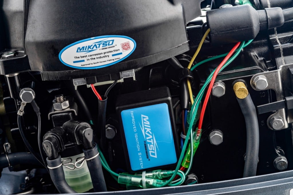 Коробка передач имеет три положения – нейтральное для запуска двигателя, переднюю и заднюю скорости. Различные режимы крепления двигателя позволят преодолевать мелководья без ущерба для винта. Усовершенствованная цифровая система зажигания CDI позволит с легкостью осуществить запуск двигателя в любых условиях, а инновационная оригинальная система подачи топлива Mikatsu (Микатсу) даст значительную экономию расхода топлива. Пятислойное лакокрасочное покрытие не только придает этому мотору красивый внешний вид, но и прекрасно защищает его от воздействия агрессивной внешней среды и дольше будет сохранять внешнее состояние мотора в эстетически достойном виде.