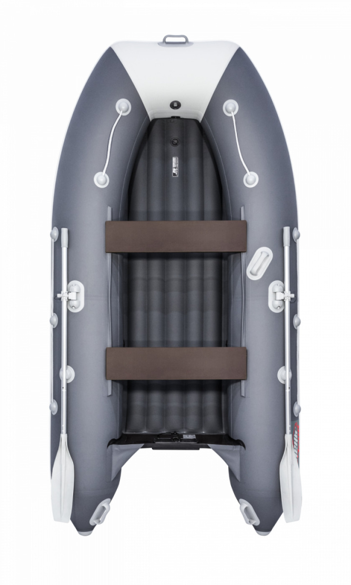 Во-вторых, корпус лодки сделан из немецкого ПВХ Хайтекс. Он легкий, приятный на ощупь, долговечный, нигде не косится и радует глаз - лодка и не слишком блестит, и не выглядит слишком матовой. Словом, все гармонично.