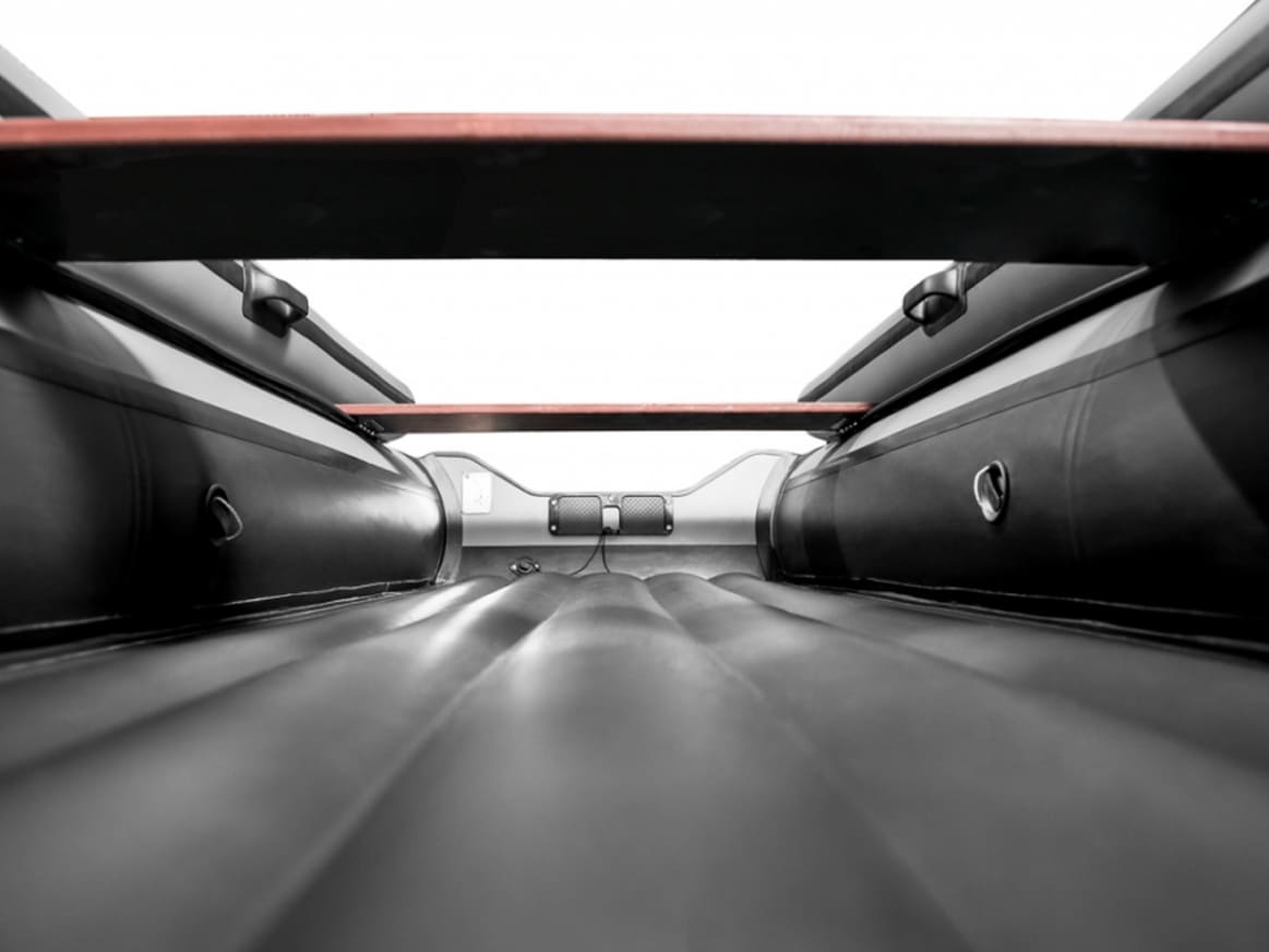 Лодка AGENT 390 с фальшбортом. Фальшборт дает дополнительную защиту от бокового ветра, волны. Чувство защищенности и безопасности присутствует у всех пассажиров лодки с дополнительным бортом. Фальшборт прочно зафиксирован на баллоне, имеет поперечную перегородку для придания формы.