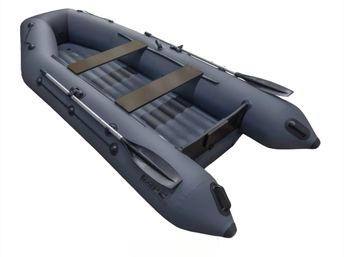 Лодки ПВХ БАРС 3400 НДНД-с надувным нескладным дном и усиленным килем, двойными баллонами из прочного стойкого к проколам и УФ-материала, надёжным транецем, кильсоном и удобными ручками, быстро собирается, компактно хранится и устойчива на воде, идеально подходит для рыбалки и прогулок.