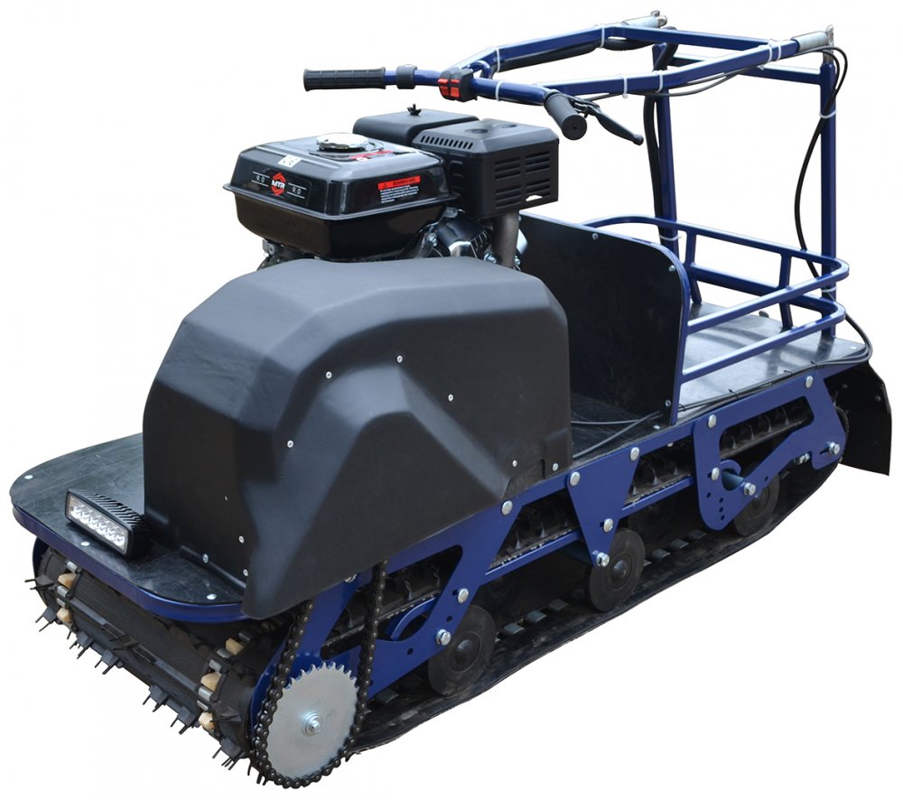 Мотобуксировщик БАРС СЛЕДОПЫТ FS 13 л.с — техника, покорившая любителей зимней рыбалки. Катковая подвеска и широкая гусеница в 500 мм обеспечивают надежное сцепление с поверхностью, а дисковые механические тормоза гарантируют немедленную реакцию и полный контроль над движением.