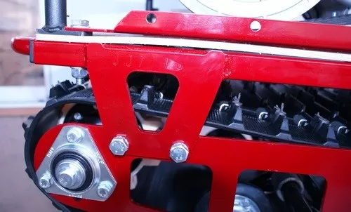 Это модель буксировщиков компании БТС с УКОРОЧЕННОЙ длиной 1300 мм. На этой модели буксировщика установлен двигатель LIFAN 15 Л.С. PRO СЕРИЯ (двигатель с улучшенными характеристиками). Рама у буксировщика максимально открытая, что улучшает выброс снега (снег не налипает). Установлена защита нижней звезды. Двигатель и трансмиссия интегрированы на одной подмоторной плите, что позволяет точно выставлять шкивы относительно друг друга, в следствии чего устраняется перекос ремня вариатора и увеличивается его срок службы. Прочная стальная рама, каркас безопасности и металлический капот надежно защищают силовую установку мотобуксировщика.