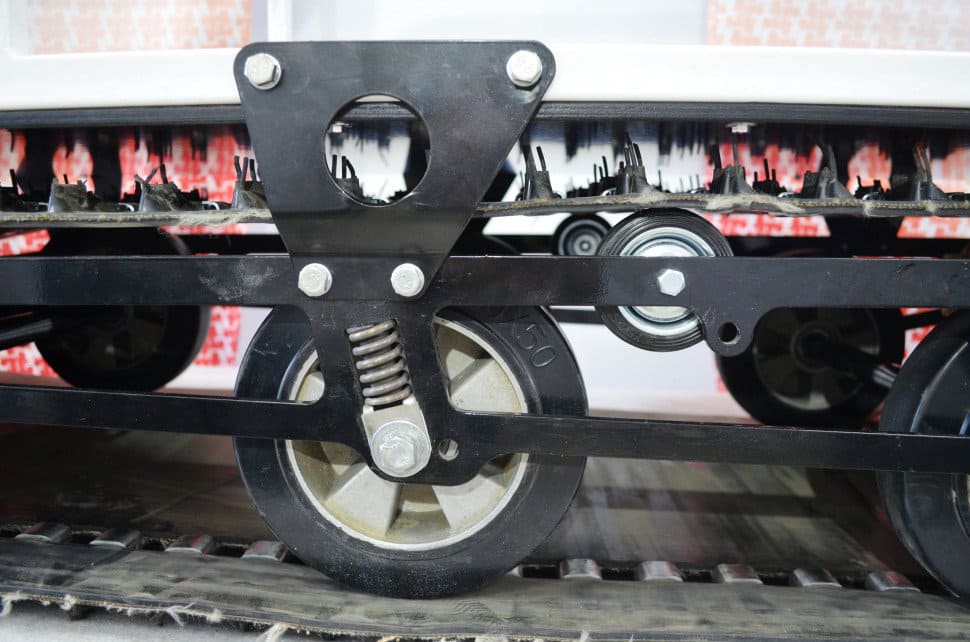 У нас вы можете купить мотобуксировщик KOIRA "БОГАТЫРЬ" 20 л.с., ставший бестселлером благодаря гусеницам Composit 500. Мощная ходовая часть способна легко двигаться по самой заснеженной местности. Большая площадь следа техники позволяет удерживать ее на поверхности покрытия, не давая глубоко проваливаться. Дополнительную поддержку оказывает подвеска с пружинным механизмом и 3 парами массивных колес, каждое из которых выдерживает до 0.8 т.