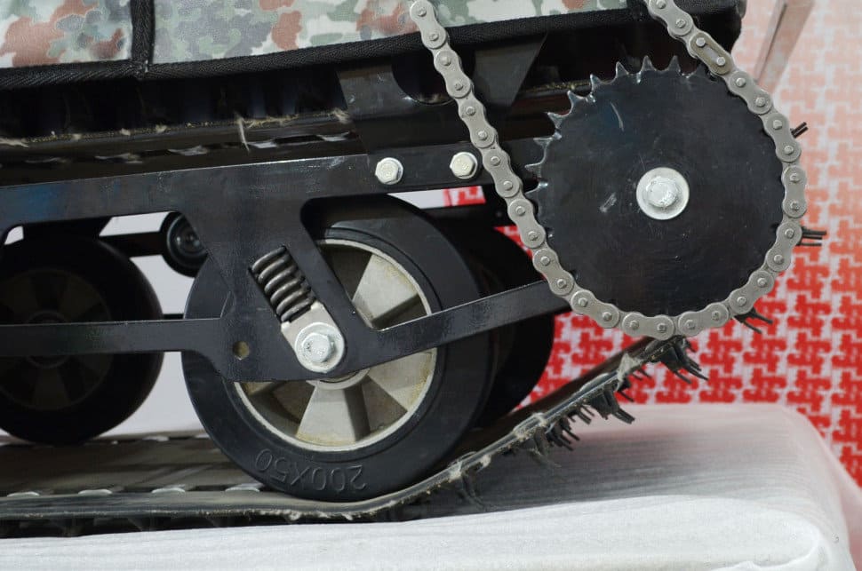 Вам удастся избежать пробуксовки, т.к. двигатель способен даже на малых оборотах аккуратно разворачивать гусеницы на бездорожье.