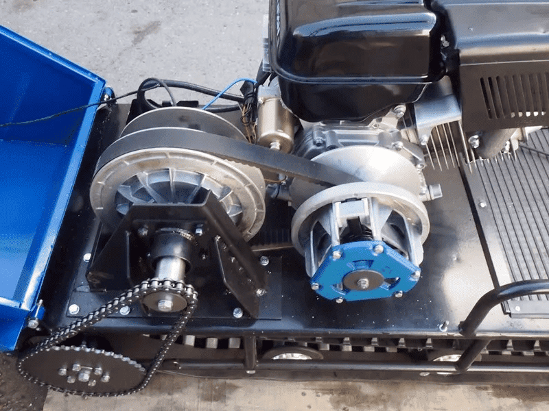 Задний ход мотобуксировщику обеспечивает коробка реверса. Эта опция полезна, чтобы вытащить мотобуксировщик своим ходом из тупика или сугроба.