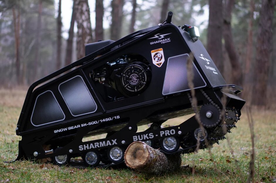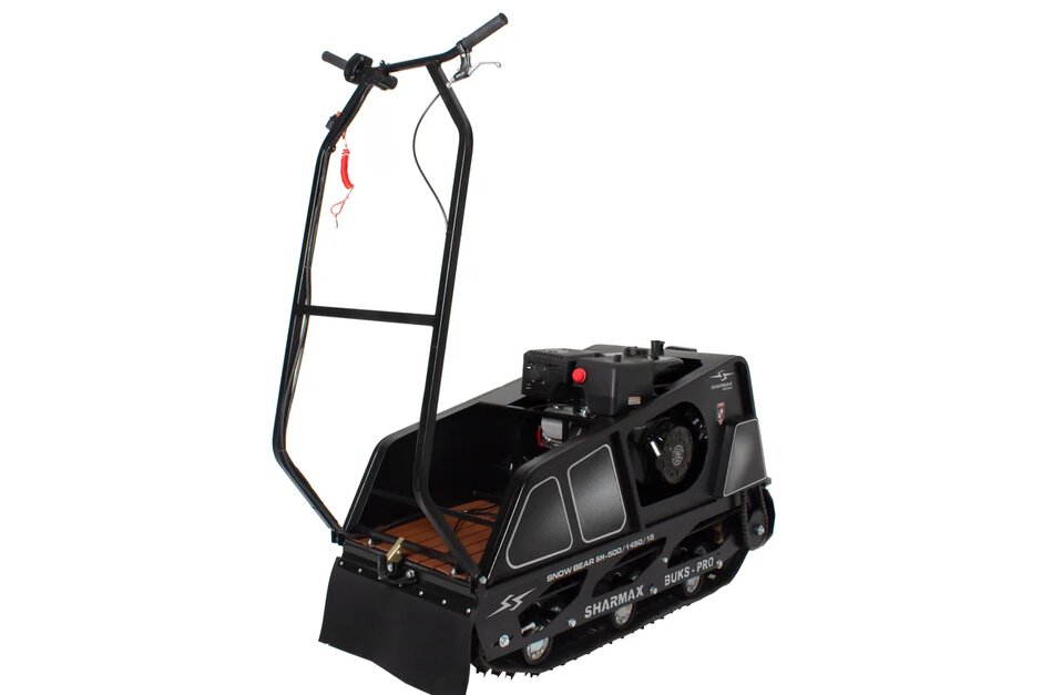 По сравнению с другими мотобуксами Шармакс этот вообще крохотным показался. А на деле оказался мал да удал. Мотор тянет нормально хоть и 6,5 лошадок всего, гусеница пробирает снег аж до земли и не растягивается
