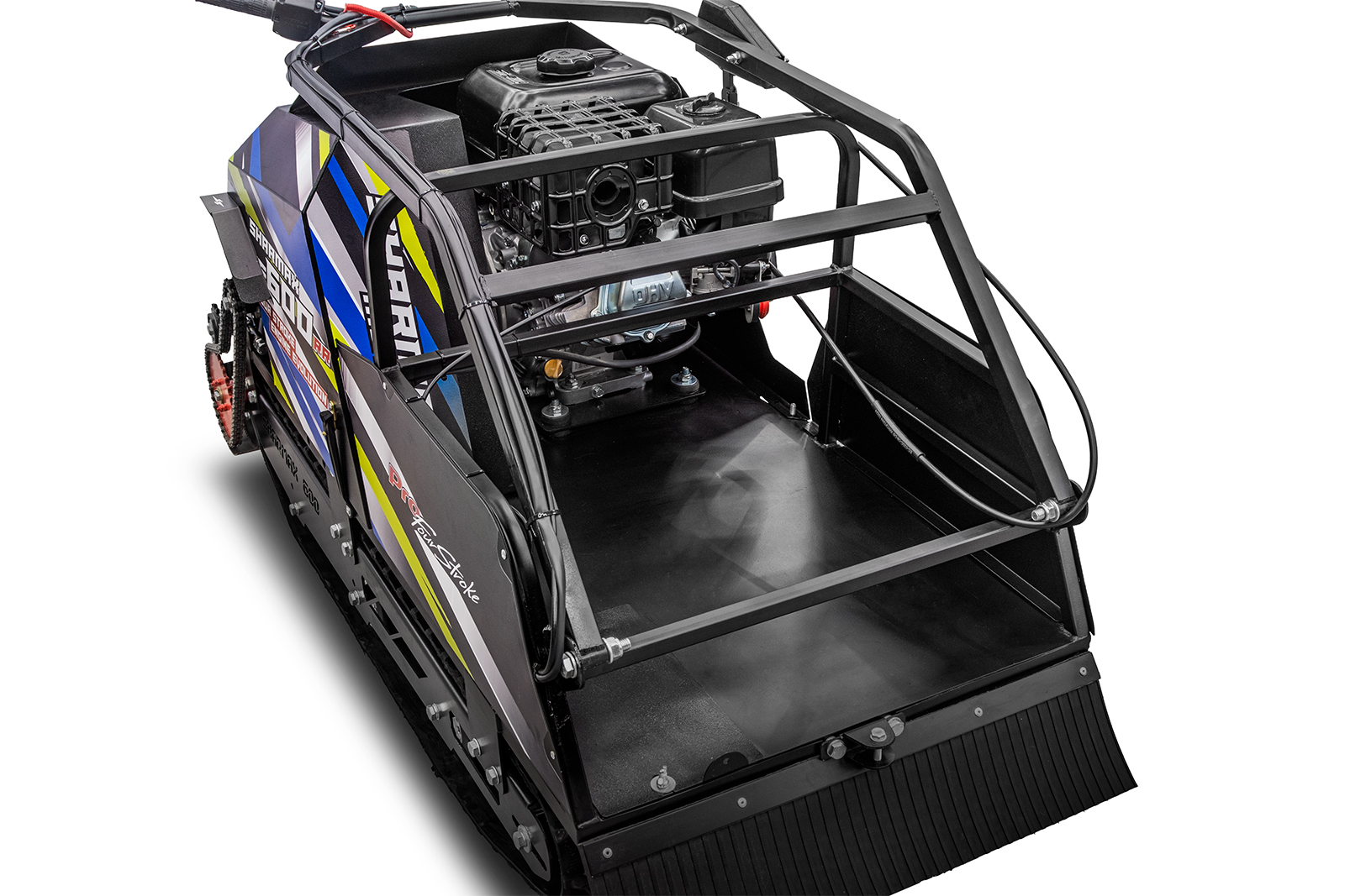 Уникальная конструкция кузова. Уникальная конструкция ребер жесткости и формы кузова позволила избежать избыточного веса мотобуксировщика, и даже на 7% уменьшить вес среди аналогичных классов моделей других брендов. То есть, мотобуксировщики Sharmax более прочные и менее тяжелые, обеспечивая надежную защиту от физических нагрузок, при этом не приобретая лишнего веса техники. За счет эго гарантируется долгий срок службы данной техники.