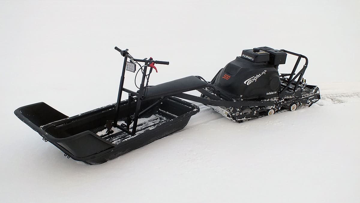 Ширина гусеничной ленты в 500 мм является ключевым фактором устойчивости и высокой проходимости. Оставляя большое пятно следа, мотособака не проваливается в рыхлую дорожную массу (снег, грязь, песок). Но даже в ином случае шасси в комбинации с мощным мотором сможет вытащить машину на стабильную поверхность.