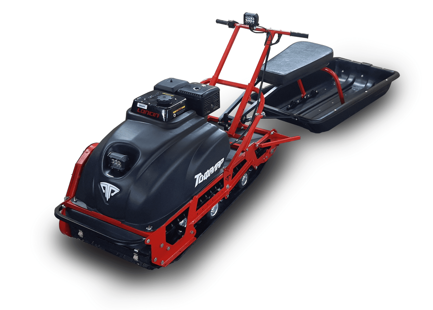 При этом техника не утратила управляемость: передний привод обеспечивает достаточный контроль за поведением мотособаки. Сохранить проходимость по снегу, обледенелой дороге (в т.ч. насту), грязи, заболоченные местам — задача гусеничной ленты шириной 500 мм. Такой параметр не даст машине застрять в дорожной массе и поможет эффективно передвигаться по льду.