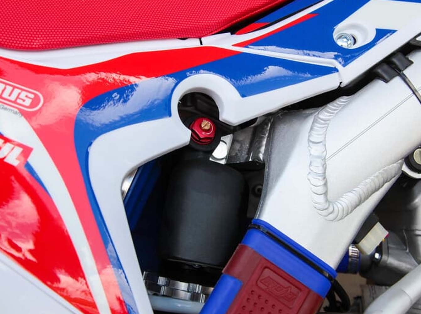 RTC300R уже в заводской комплектации готов к покорению серьезного бездорожья и участию в соревнованиях. Подвеска MOJO c большими ходами имеет полный диапазон регулировок и помогает отрабатывать даже самые жесткие приземления, с лёгкостью "проглатывает" все неровности. Идеальная развесовка и сбалансированность конструкции мотоцикла даёт преимущество при прохождении острых поворотов и подъёмов.