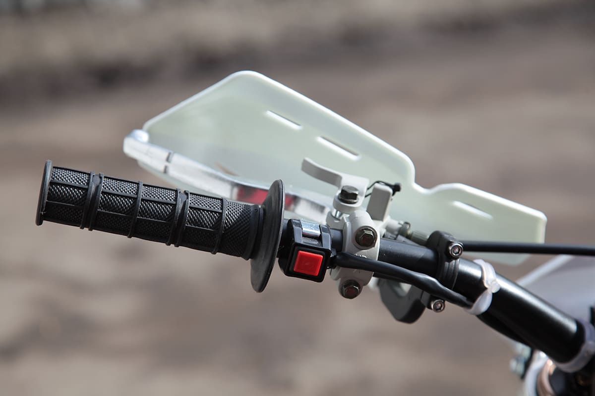 В мотоцикле есть все необходимое, для комфортного передвижения по бездорожью – электростартер, яркая LED фара головного света, удобное сиденье, широкий спортивный алюминиевый руль, защита рук, датчик моточасов.