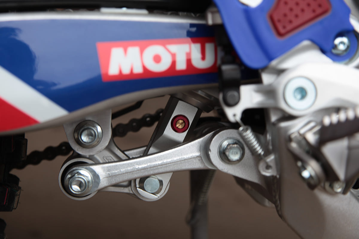 На мотоцикле установлено все необходимое для оффроуда: вилка “перевертыш”, литые рычаги задней прогрессии, алюминиевый маятник, прочный задний бугель, “злая” внедорожная резина Kenda. А также: усиленные легкосплавные колёсные диски MOJO, усиленная цепь, защита рук, датчик моточасов, прочные анодированные CNC ступицы, складные СNC рычаги тормоза и сцепления, колесные подшипники NTN, защита коллектора, днища и тормозных дисков. Комплектуется одинарным либо двойным глушителем. Мощная гидравлическая тормозная система HSК Racing остановит байк в любых условиях.