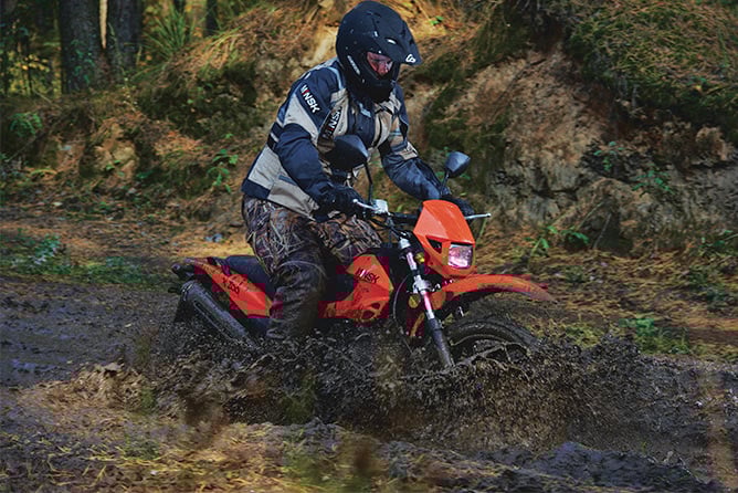 Являясь мотоциклом начального уровня класса эндуро, М1NSK Х 200 раскрывает свой потенциал там, где заканчивается ровная дорога, и асфальт сменяется песком или гравием. Небольшой вес и длинноходная подвеска, крепкий пластик, окрашенный в массе соответствуют прямому назначению мотоцикла - работать в тяжелых условиях бездорожья.