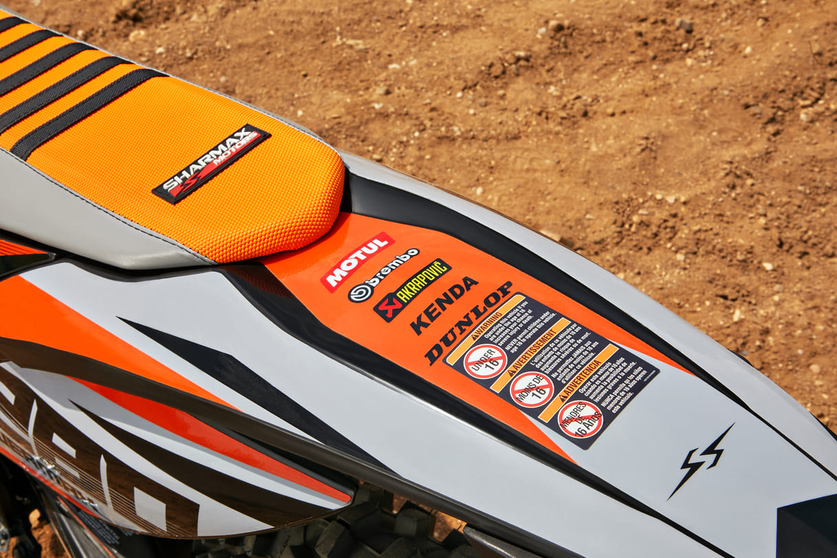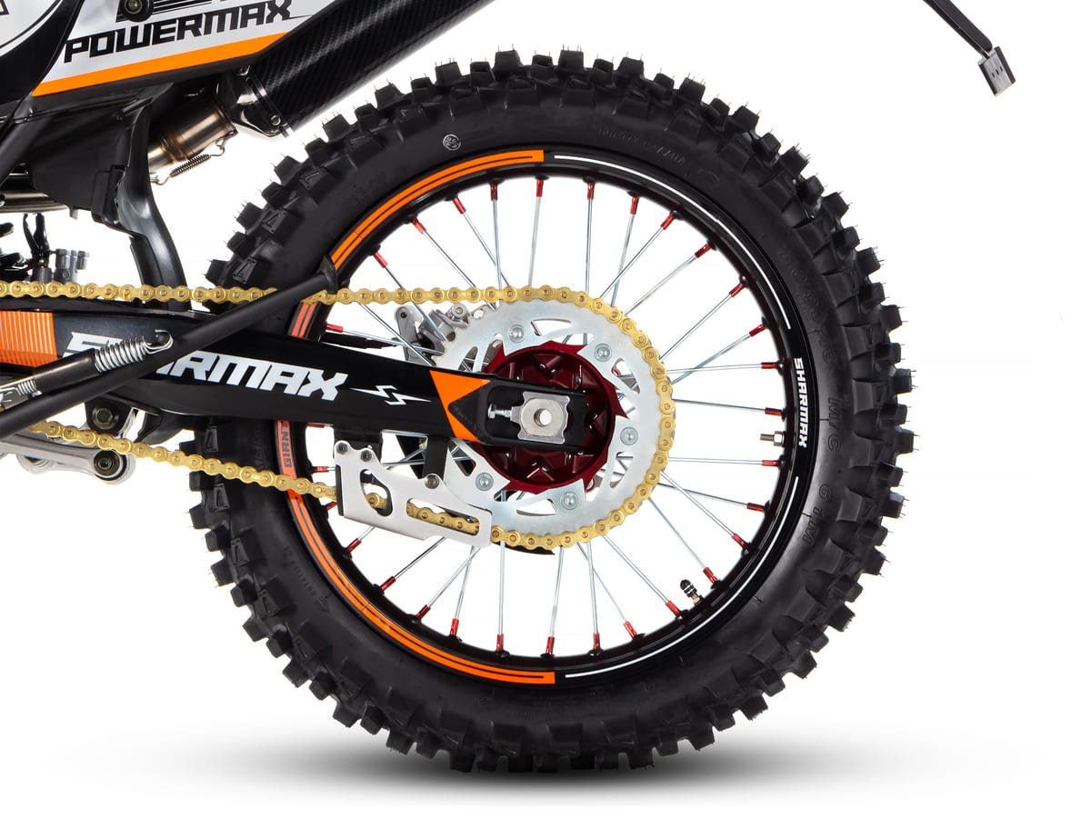 Подвеску Sharmax PowerMax 280 PR можно настроить под грязь, камни и песок без потери качества. Передняя вилка фирмы KKE имеет регулировки сжатия и отбоя, задняя (KKE) — справится с любыми преградами, от камней до деревьев. Байк легко настроить под свой вес, подобрав идеальный баланс жёсткости.