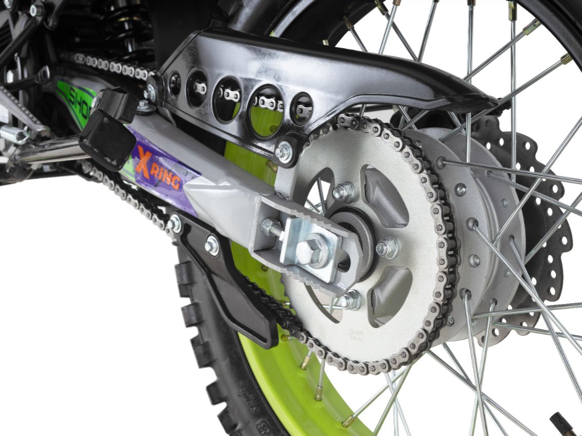 Подвеска Shorner 280 R разработана специально для бездорожья. Регулировка задней подвески позволяет настроить преднатяг пружины и высоту по седлу, обеспечивая комфорт и безопасность даже на самых сложных участках маршрута. Хромомолибденовый сплав, из которого изготовлен маятник, гарантирует высокую прочность и долговечность конструкции.