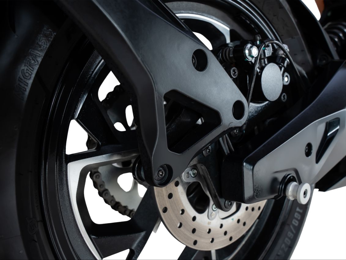 Электрический двигатель с воздушным охлаждением способен разогнать мотоцикл до 115 км/ч, а запас хода Sharmax Motors E-GP 501 Ultra составляет целых 90 км на одной полной зарядке в ЭКО режиме.