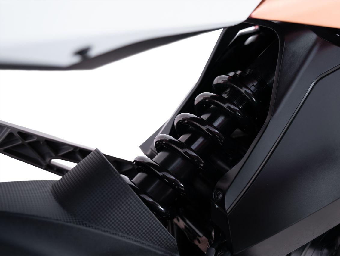 Спереди и сзади — гидравлическая. Основным преимуществом гидравлической подвески является её высокая эффективность в амортизации ударов и вибраций. Она обеспечивает плавное и комфортное движение электробайка, а также улучшает управляемость и стабильность на дороге.