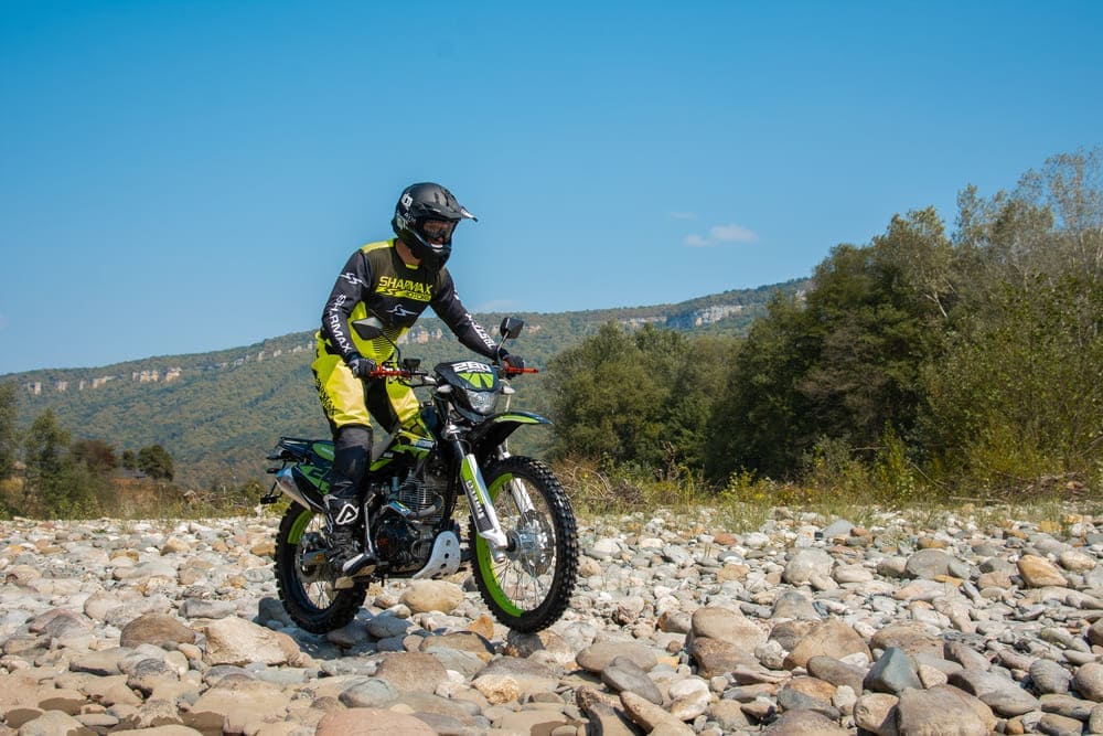 Отличный кроссовый эндурик. Байк взял недавно, двигатель 250 кубов на легком эндуро вывозит без напряга. Резина злая, по грунту гребет хорошо. Подвеска квадрика регулируется, настроил за вечер, теперь меньше пробивает