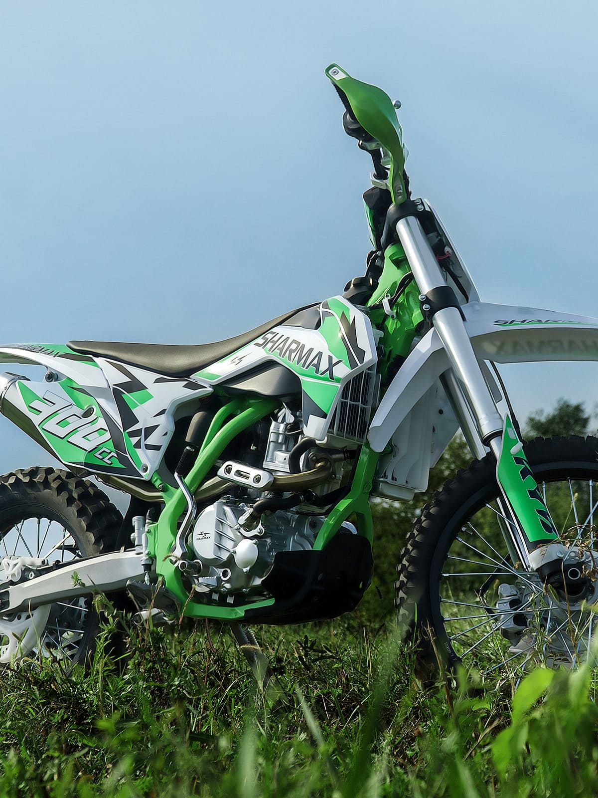 Внедорожный мотоцикл Sharmax Power Max 300 идеально подойдёт для более опытных райдеров. Байк построен на раме высокой прочности из хроммолибденовой стали AJ1. Задний маятник из прочного алюминиевого сплава с оригинальной геометрией, повышающей прочностные характеристики, при уменьшенном весе узла. Двигатель с объемом 280 куб. см и мощностью 29 л. с. позволяет добиться серьёзных скоростных показателей.