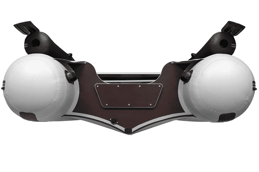Окончания баллонов имеют специальную сферическую форму. Такая форма обеспечивает быстрый выход лодки на глиссирование. Также форма баллонов позволила увеличить пространство кокпита за счет передвижения транца к окончанию баллонов.
