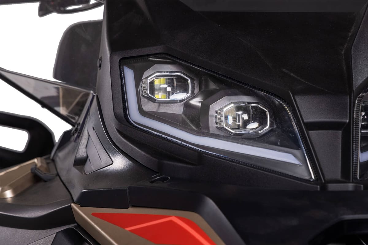 Гусеницы снегохода отличаются четким сцеплением со снегом и обеспечивают безопасность райдеру. Особенно это важно, когда речь идет о подъемах по заснеженным тропам. На снегоходе установлена: