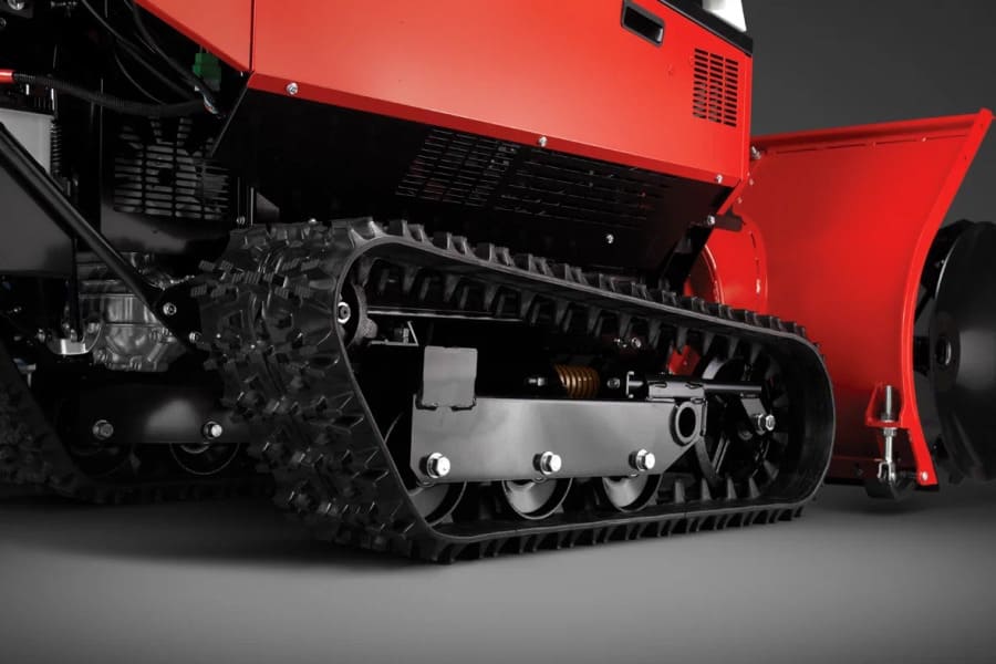 Использование гусениц гарантирует высокую проходимость на всех типах снежного покрова, вне зависимости от его глубины. Гусеничный ход снегоуборщика эффективен при уборке снега на неровных поверхностях и уклонах, обеспечивает полную управляемость машины.