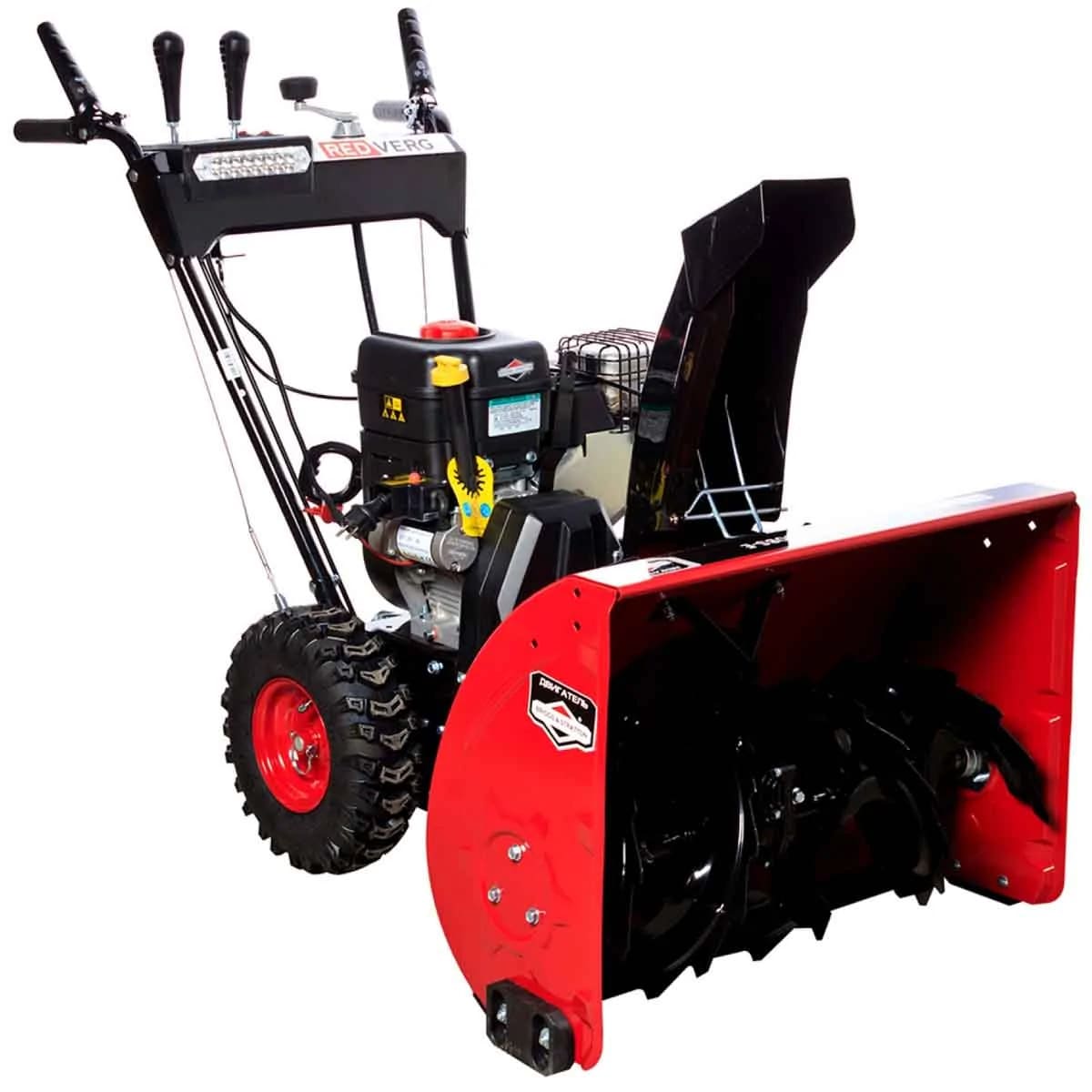Бензиновый снегоуборщик RedVerg RD-SB71/1150BS-E предназначен для расчистки больших площадок от слежавшегося снежного покрова, наста и сугробов. Снегоуборщик подходит для дома и дачи, а также для коммунальных служб. Мощный 4-тактный мотор зимней серии Briggs&Stratton 8,5 л.с. заводится при температуре до −29°С. Два вида стартера — ручной и электрический — помогают быстро запустить снегоуборщик даже в сильный мороз. Массивная техника для очистки снега имеет 7 скоростей — 5 вперед, 2 назад. Выбор скорости зависит от плотности снежного покрова и его высоты.